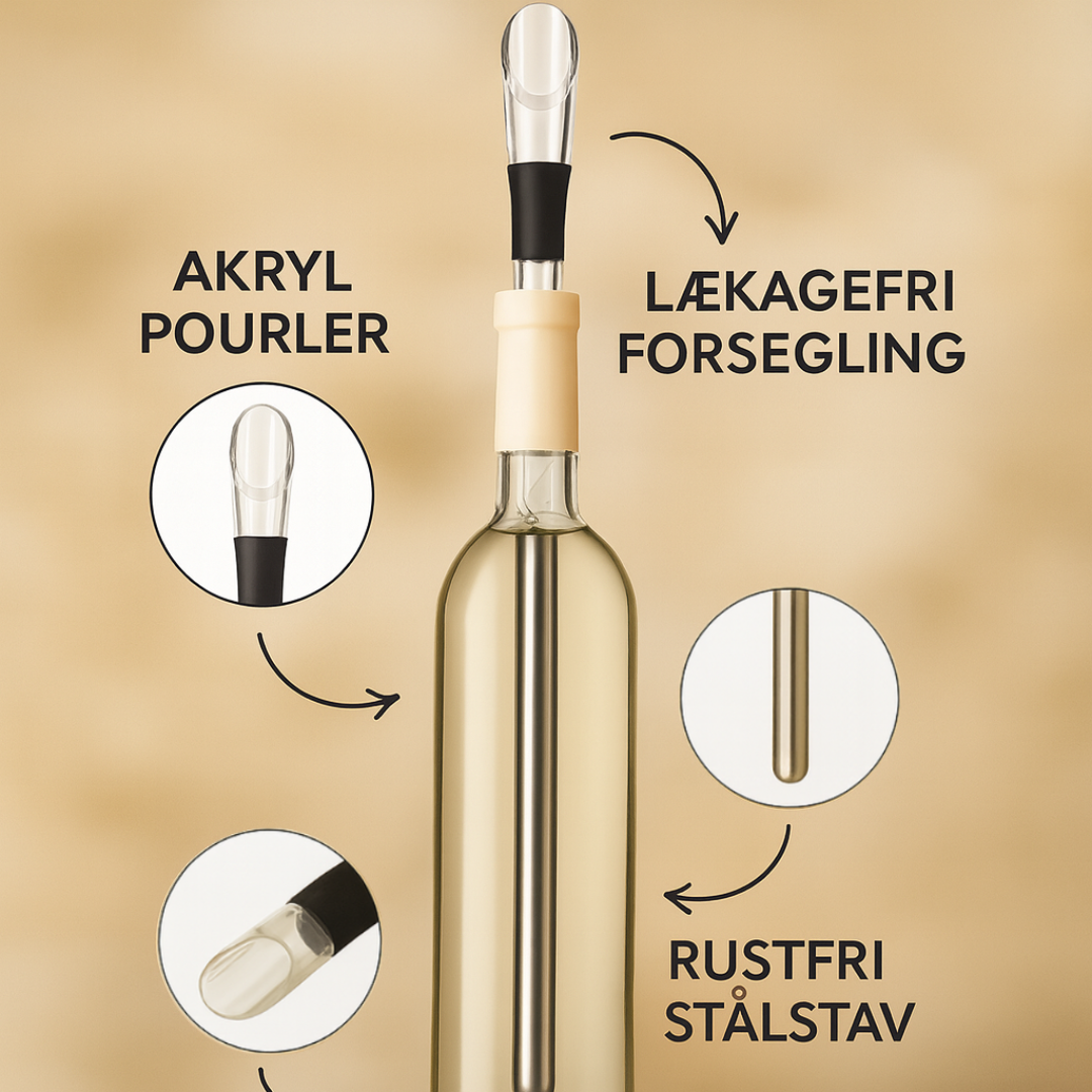 Opdag den ultimative måde at nyde din vin på med en vinkølestav. På kun 10-15 minutter bringer den din vin til den ideelle serveringstemperatur og holder den kølig i op til 3 timer. Med denne kølestav forbliver din vin perfekt afkølet fra første hældning til sidste sip.